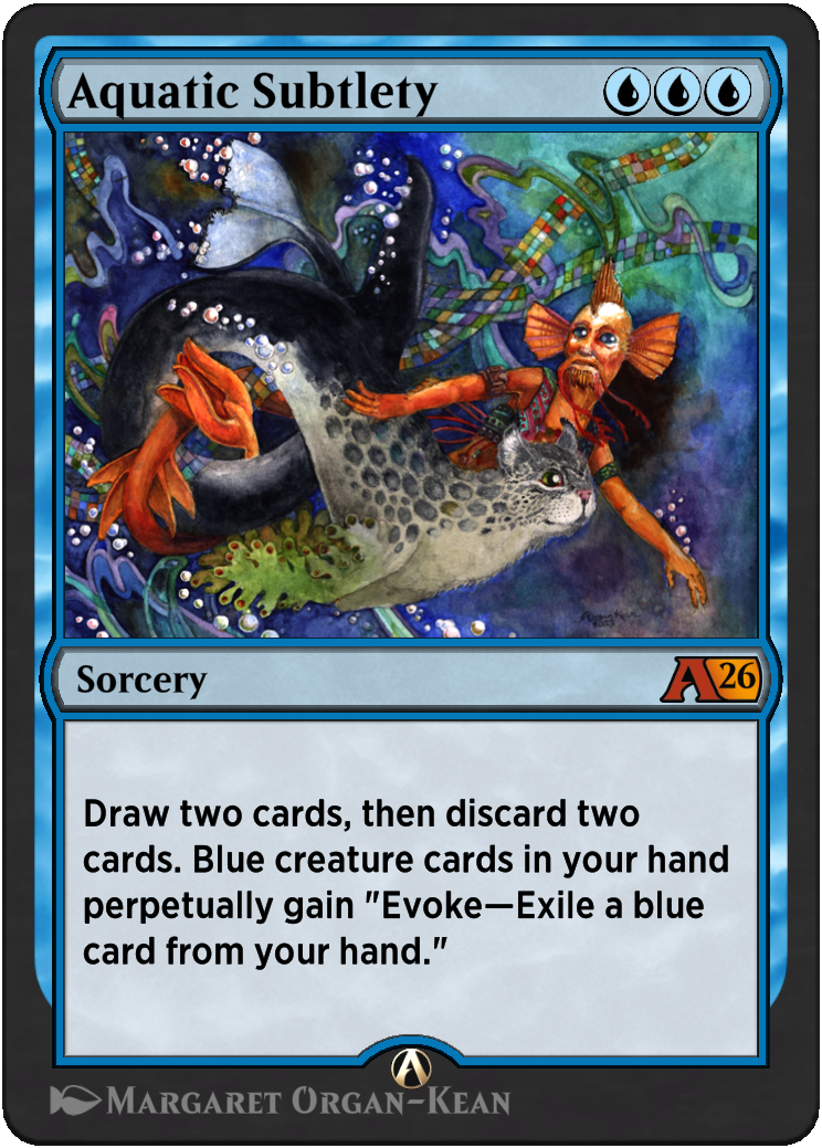 I've had some new paintings drop in Magic: Arena and I've decided to sell one of them. It's Aquatic Subtlety, a 9" x 12" watercolor and the price is $2500.00 plus shipping.